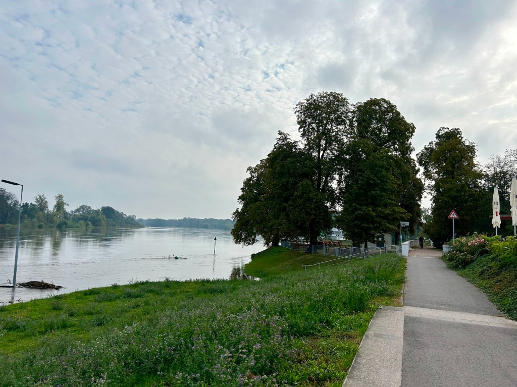 Nous comptions traverser à cet endroit car nous savions que de ce côté il y a beaucoup d’endroits où on ne passe pas. Raté, le courant est encore trop fort et l’eau trop haute.