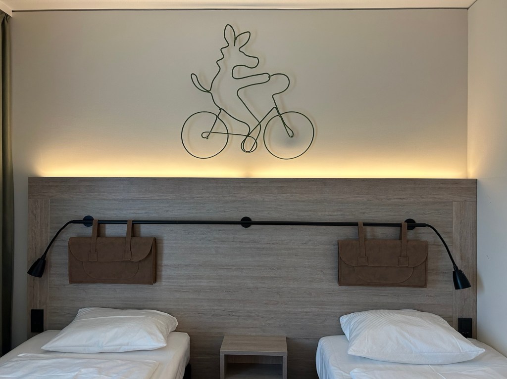 Quel bonheur, il ne reste plus qu’une vingtaine de kilomètres. Arrêt chocolat chaud pour Yves avec crème fouettée et latte macchiato pour moi.