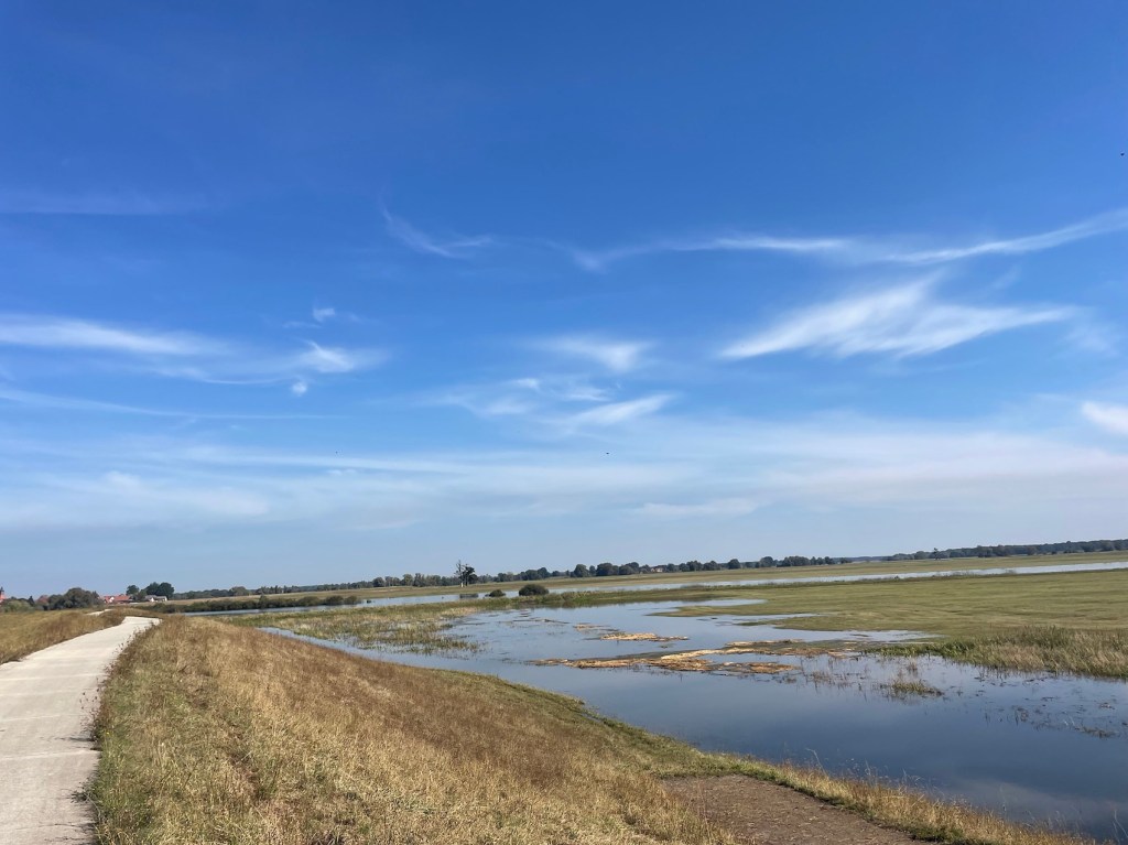 Non, non vous ne pouvez pas passer, la terre est trop meuble, ils sont en train de travailler sur la digue. Demi-tour qui nous vaudra une dizaine de kilomètres en plus.