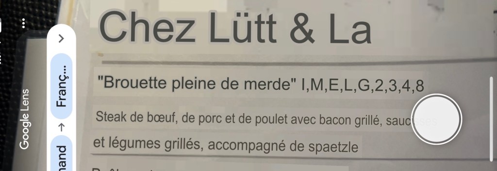 Petit moment de fou rire. Nous nous servons de l’application Google traduction pour lire les menus du restaurant.