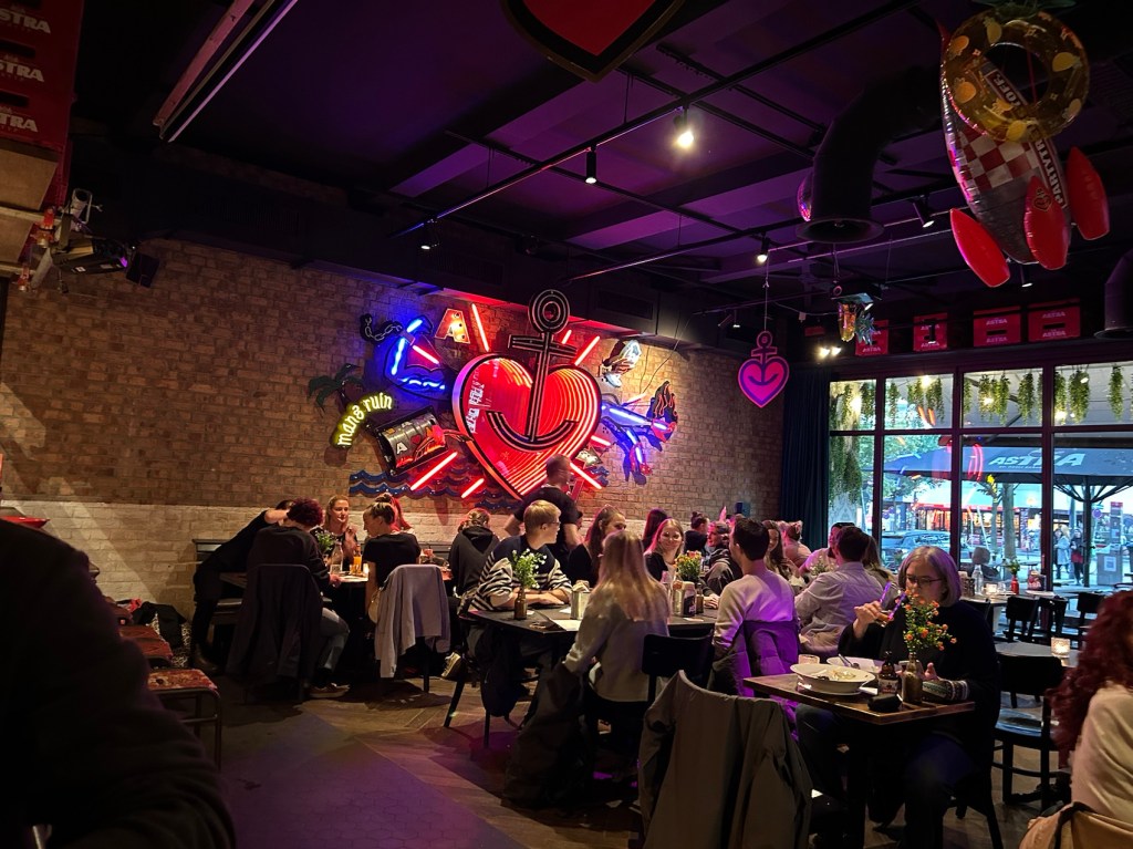 Repas dans un immense bar restaurant plein de jeunes. Ça nous change de nos petits villages.