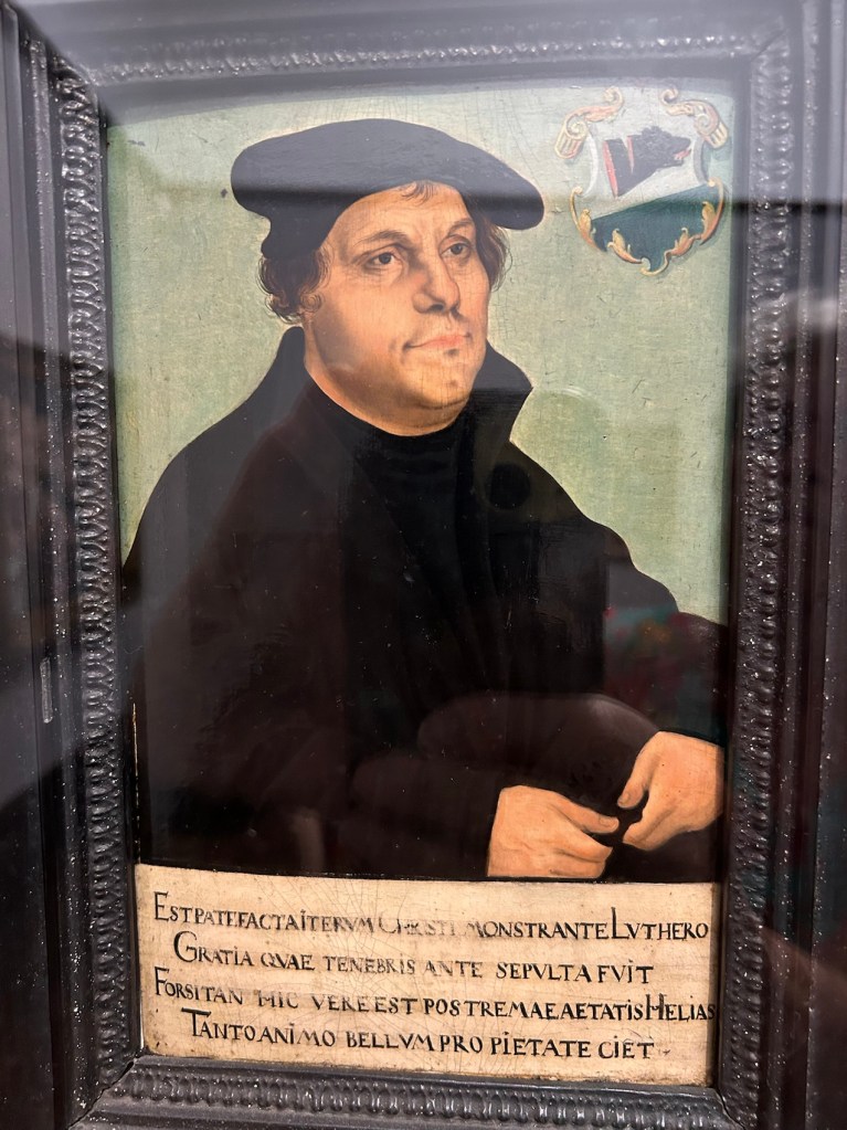 Un rien nous amuse, à Wittenberg où Luther a prêché, dans l’église St Marien nous avons vu ces deux portraits… Luther et Mélenchon…