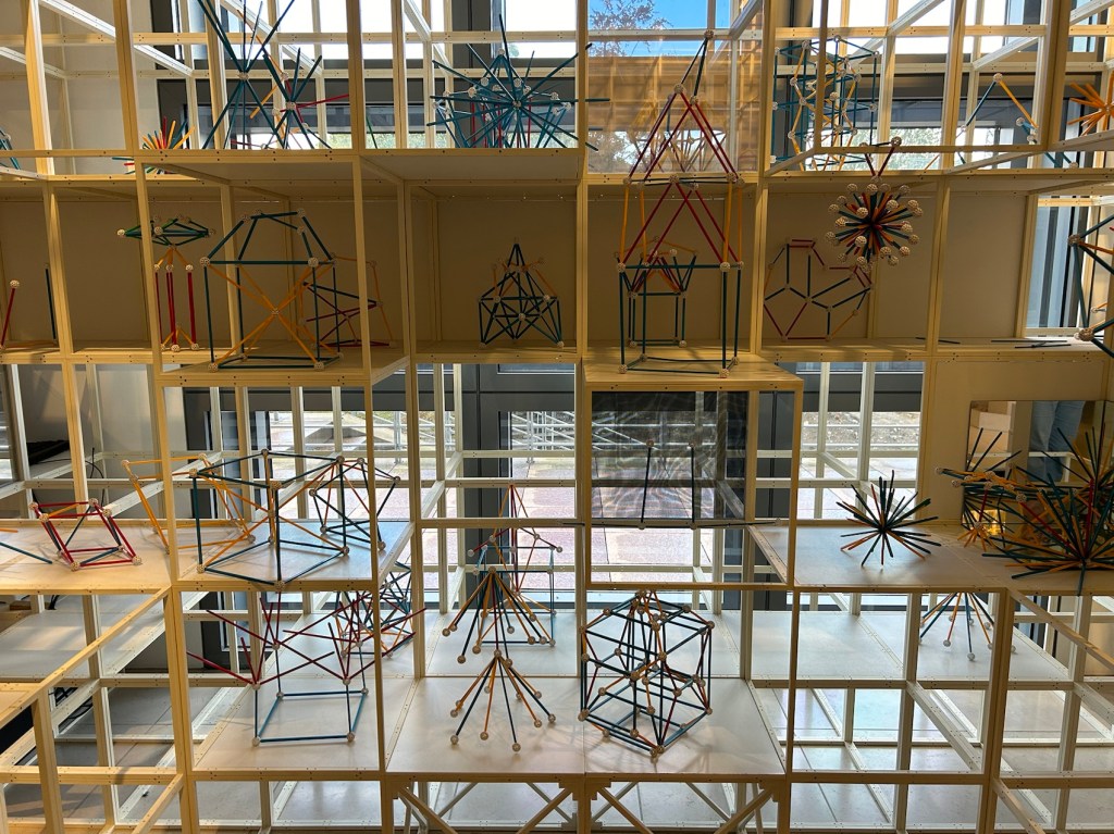 Partie pour les enfants. Ils ont à leur disposition des baguettes et des boules pour accrocher les baguettes afin de créer des formes.
