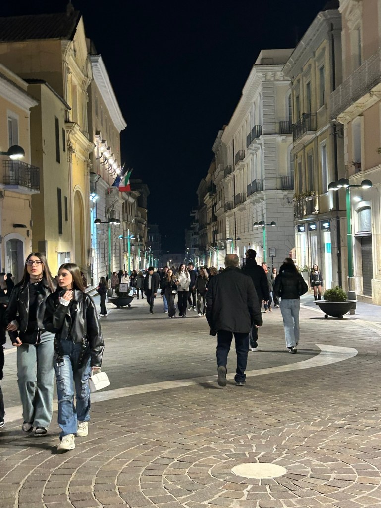 Benevento le soir, beaucoup de monde, de jeunes dans les rues.