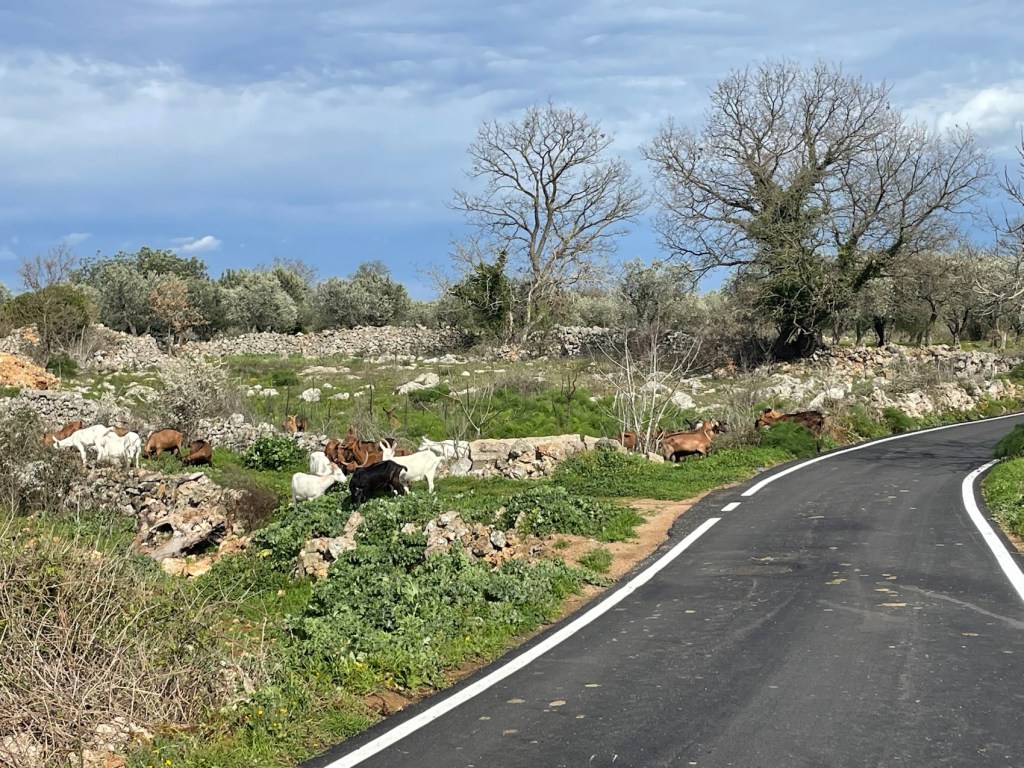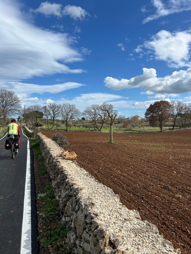 Entre Gioia et Putignano nous roulons sur une grande route avec un peu de circulation, heureusement les voies sont large, le bas-côté est en bon état et on peut y rouler en sécurité. Je pense y avoir battu mes records de vitesse…