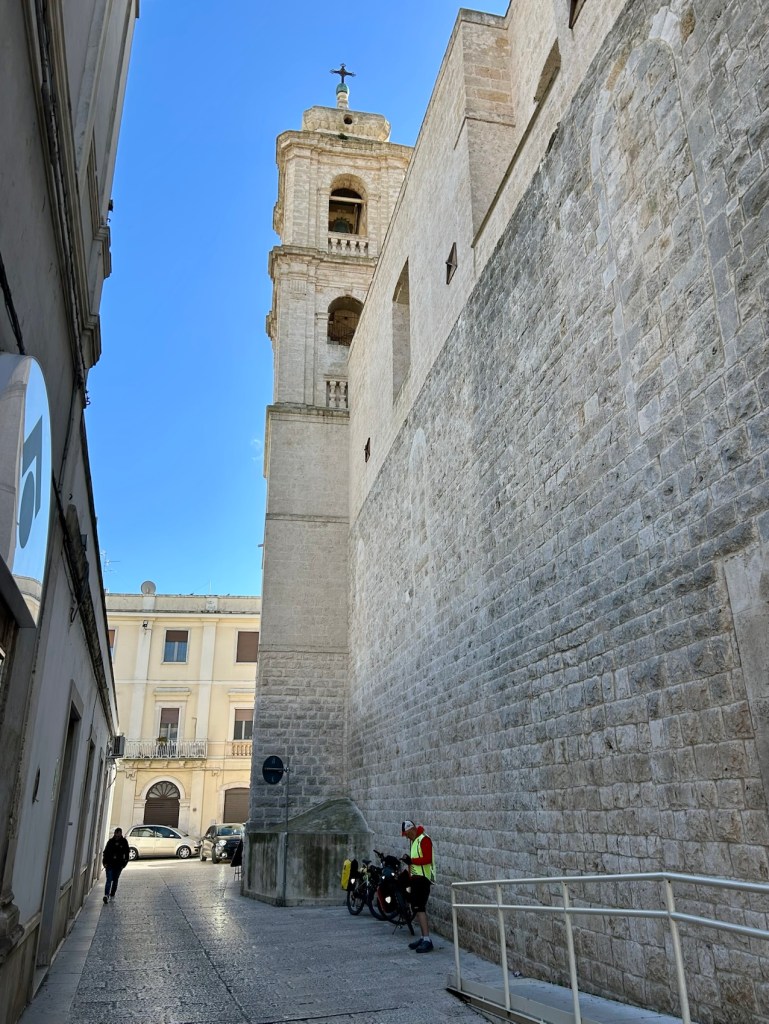 Putignano. Encore une belle côte pour y arriver mais pas aussi dure qu’hier.