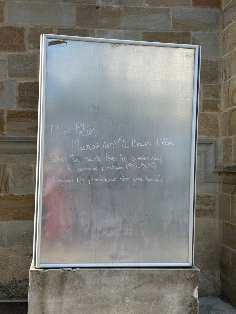 Publicité d’un maraîcher sur la place du marché.