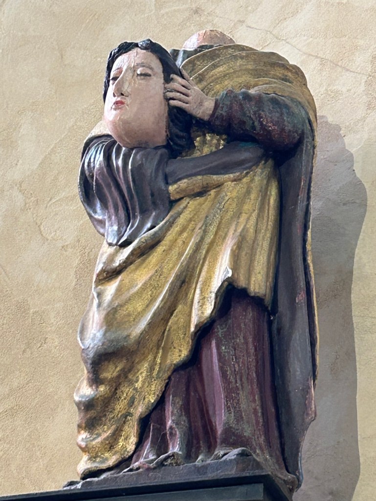 Église Sainte-Croix, visitée en cherchant une place de parking pour garer la voiture de Jean-Luc et Christine qui nous ont rejoint pour pédaler avec nous.