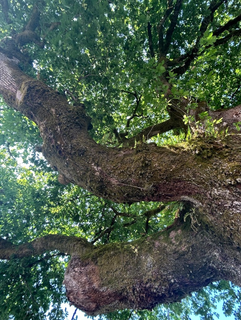 Les branches du chêne, vue de dessous, imposantes.