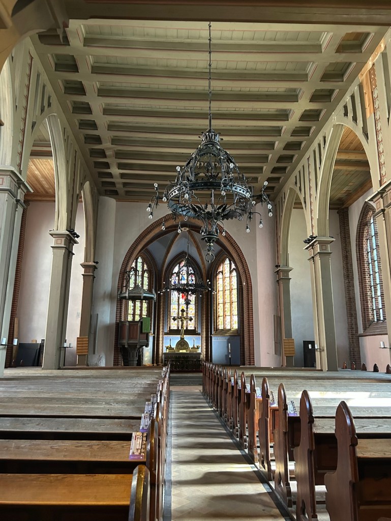 Église en bois à l’intérieur.