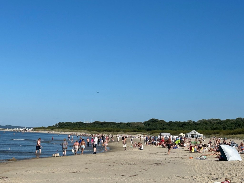 Enfin la mer Baltique, le but et le début de notre voyage. Il y a un monde fou sur la plage, il fait très beau et chaud.