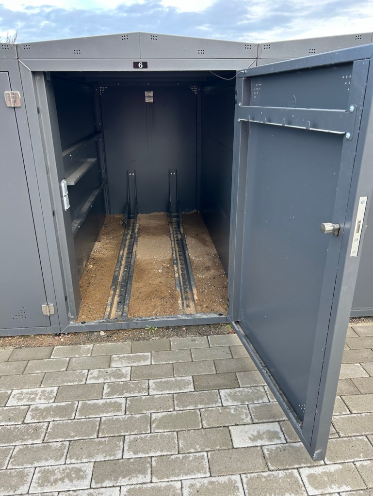 La chambre d’hôtel de nos vélos cette nuit. Prise électrique pour charger la batterie, il manquait juste la fenêtre avec vue sur la mer !!!