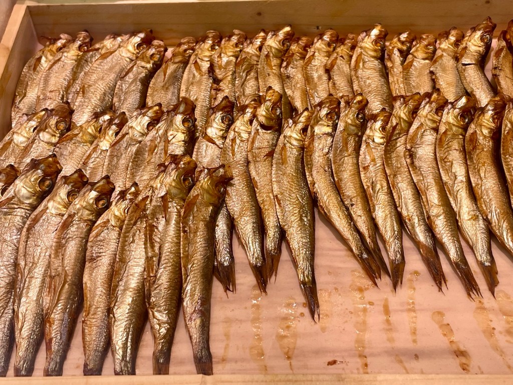 Nous avons acheté notre sandwich de midi chez le poissonnier, mais pas ces jolis petits poissons.