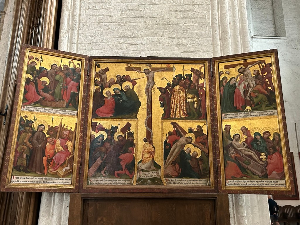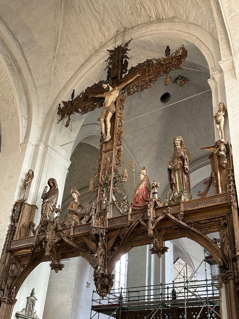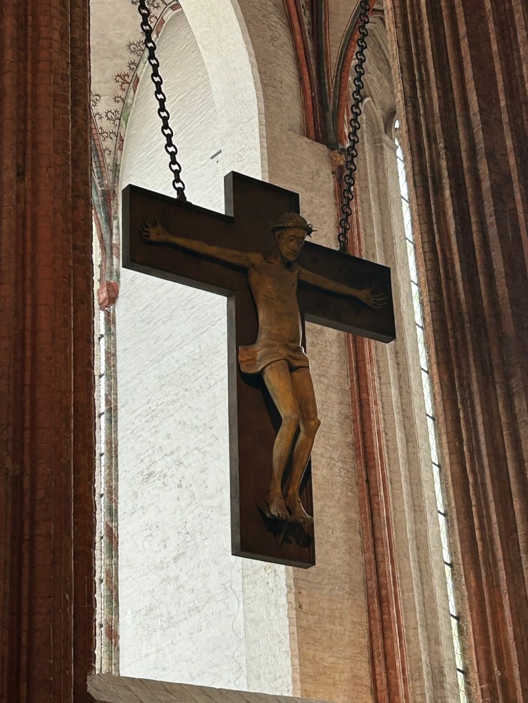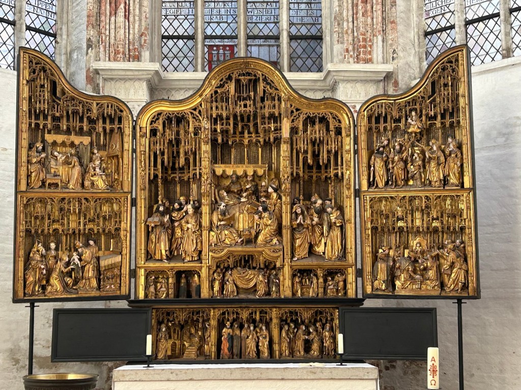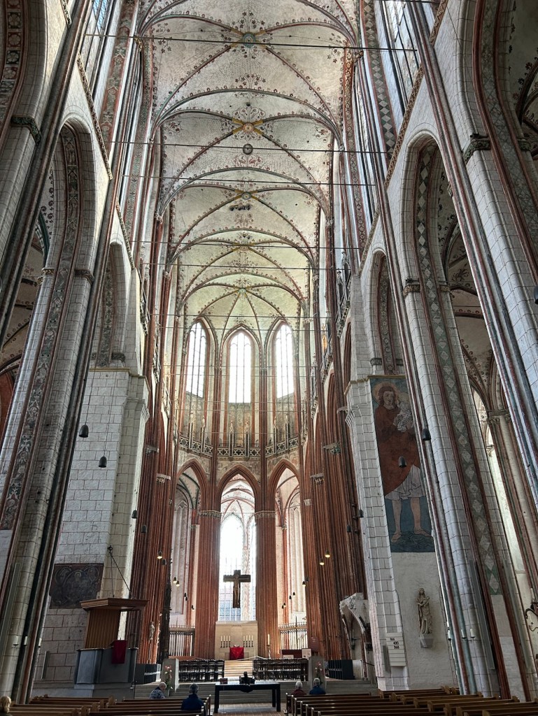 L’église Sainte-Marie. Ell a subi un incendie dévastateur après le bombardement de Lübeck par la R.A.F. dans la nuit du dimanche des rameaux en 1942. Des œuvres ont péri à jamais.
