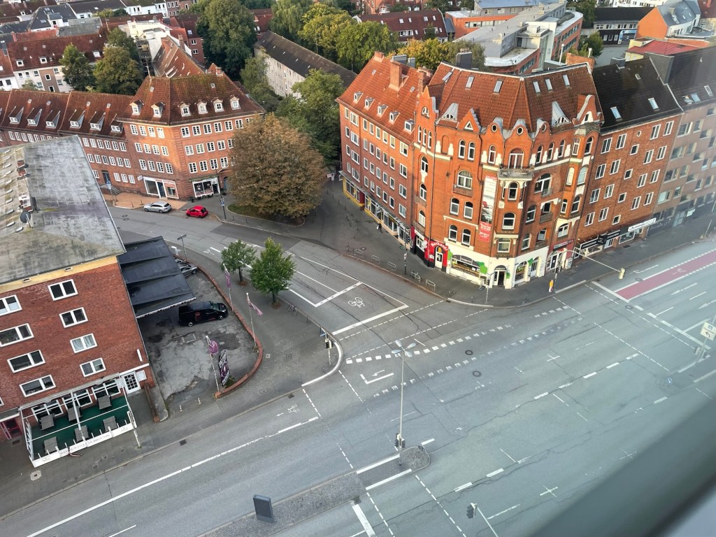 La rue devant l’hôtel, vue du 11ème étage. Ce matin le soleil est là.