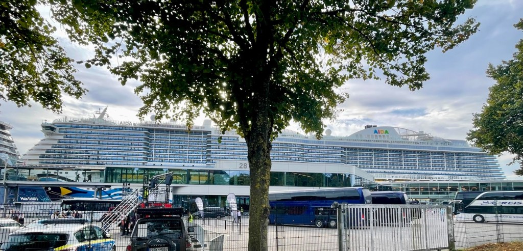 Non ce n’est pas un immeuble, c’est un bateau avec 1600 membres d’équipage… il y avait trois bateaux côte à côte, ça grouillait de gens avec des valises et il y avait plein d’autobus.