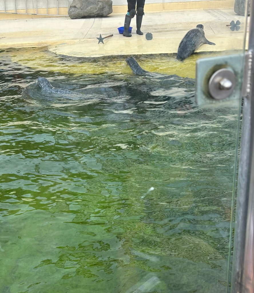Un attroupement attire notre regard, une piscine avec des phoques.