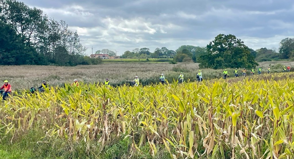 Un groupe de cyclistes, je me suis arrêtée car la piste était très étroite.