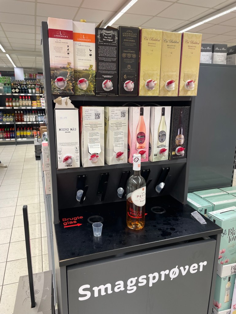 Vu dans un supermarché à la frontière… on peut goûter les vins.