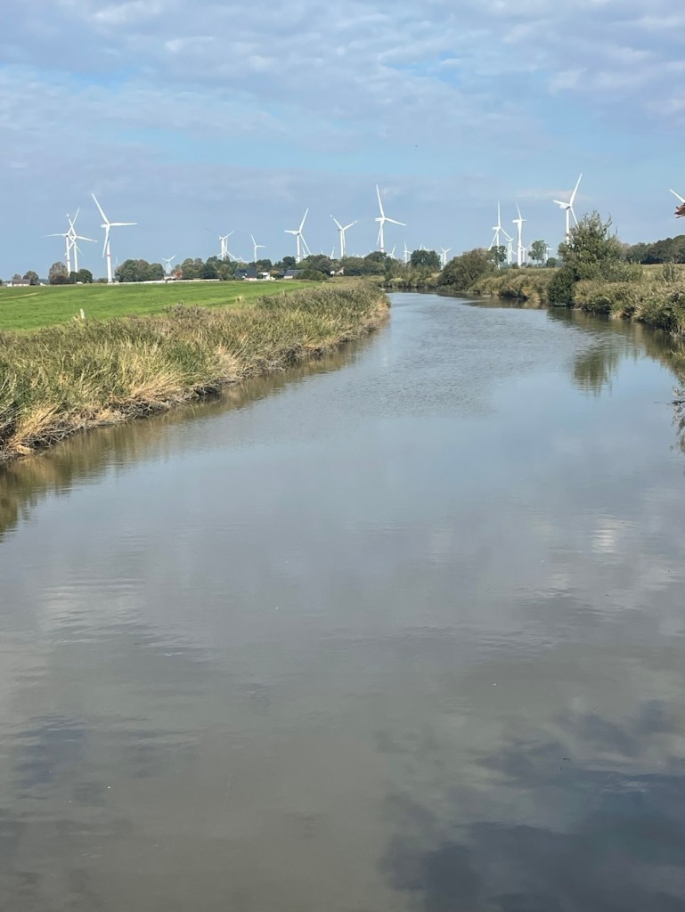 Aujourd’hui, toujours vent de face mais moins que les autres jours. Nous avons oublié de photographier les moutons dans les prés du bord de l’Elbe…