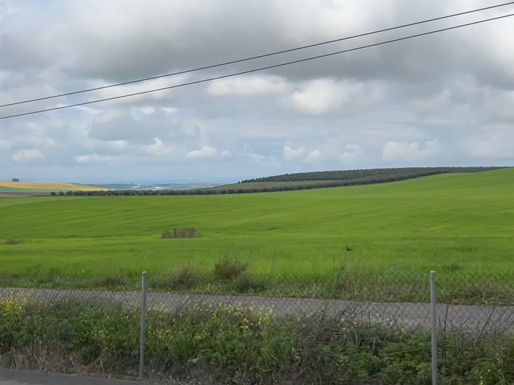 Il n’y a pas de circulation aujourd’hui, les paysages du début ressemblent à ceux de la Mancha que nous allons un peu traverser : un immense plateau avec très peu de cultures. Très beau et très reposant pour moi.