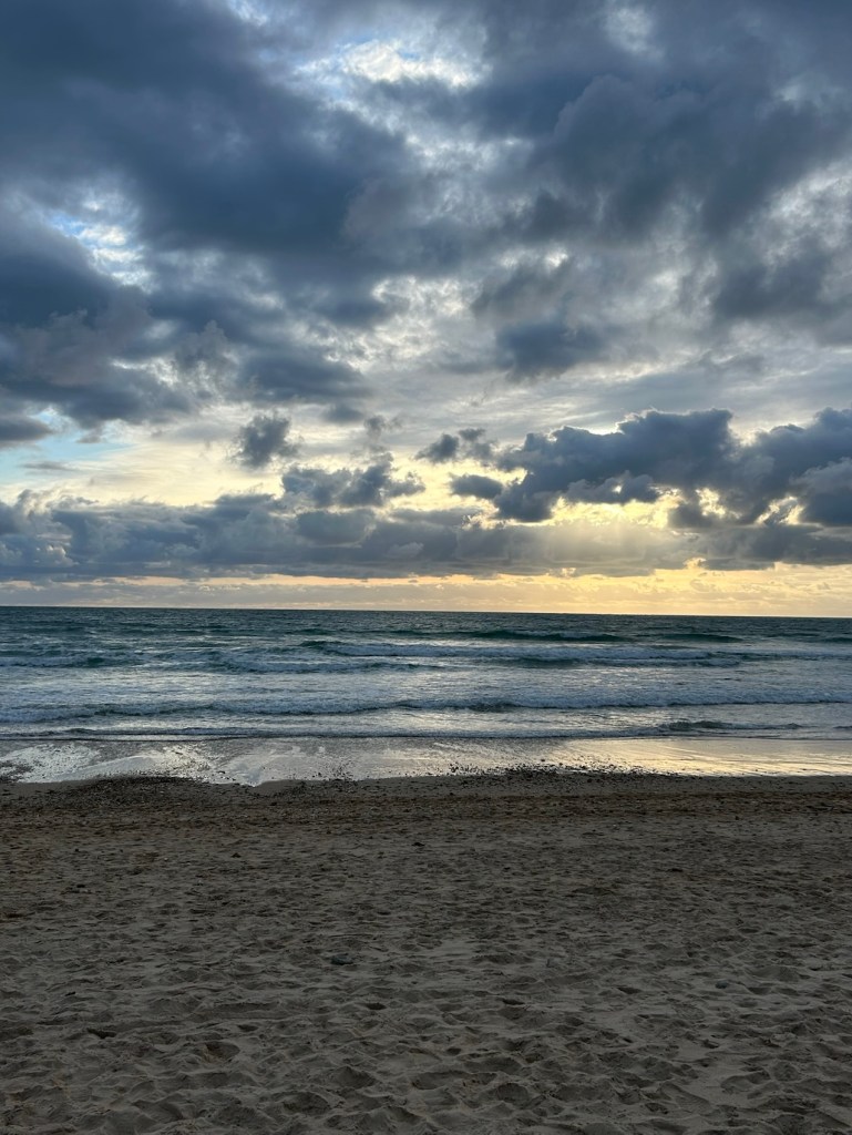 Le ciel s’est couvert. Nous allons voir la plage. La mer est aussi noire que le ciel.