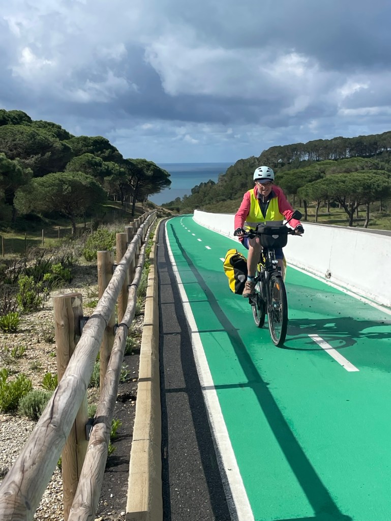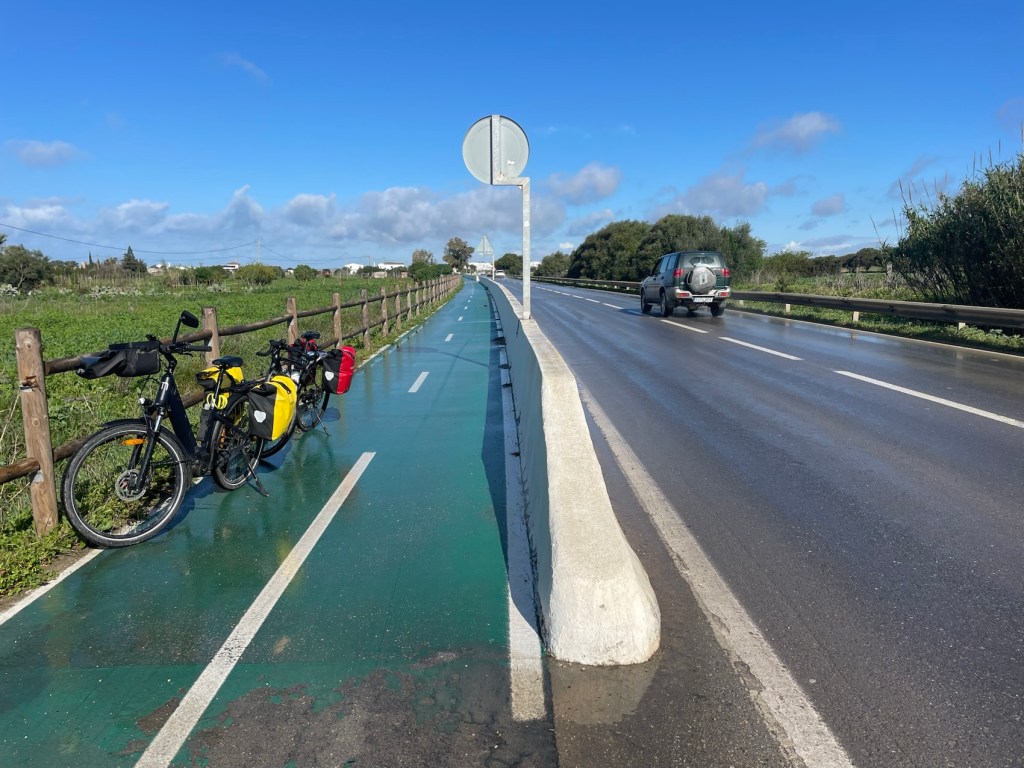 Aujourd’hui nous allons rouler sur cette piste cyclable, sauf sur les dix derniers kilomètres où elle était barrée car impraticable à certains endroits avec les cassis plein d’eau. Nous avons roulé sur la nationale, qui surplombait la piste. Heureusement les conducteurs espagnols ralentissent et se déportent.