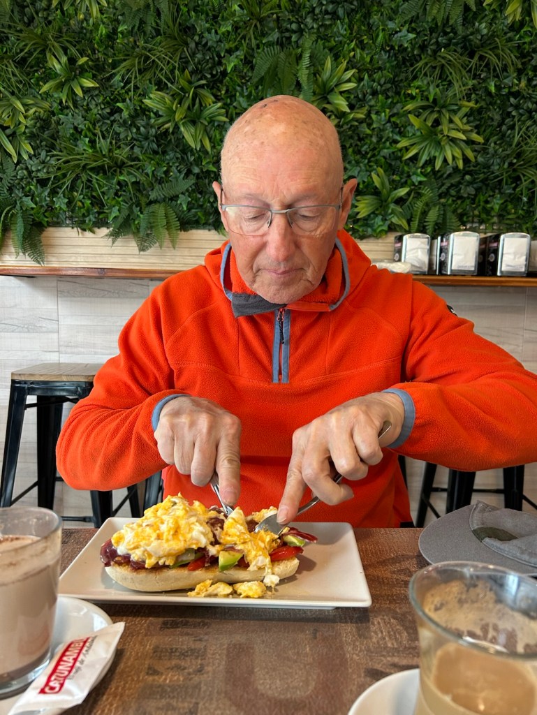 Pas de petit-déjeuner à l’hôtel, nous trouvons notre bonheur dans un bar. Il était bondé à croire que les espagnols déjeunent dans les bars car nous étions les seuls étrangers.