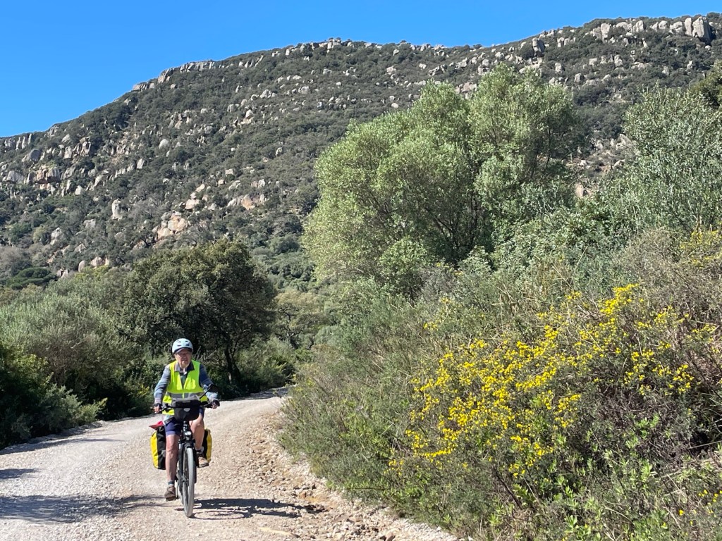 Là, je ne suis même pas au bout de ma vie, je suis morte !!! Nous n’avions pas vu qu’il y avait 2 Castellar de la Frontera, le nuevo et le viejo. Nous pensions dormir au nuevo, 8 km plus bas, 8 km de côte et la batterie de mon vélo s’est éteinte 2 km avant l’arrivée. 2 km en poussant mon vélo en côte. Yves a récupéré mes sacoches mais le vélo est tellement lourd !!! Heureusement que nous avons mis mon vélo à la charge pendant le repas, cela m’a donné 10% de plus…