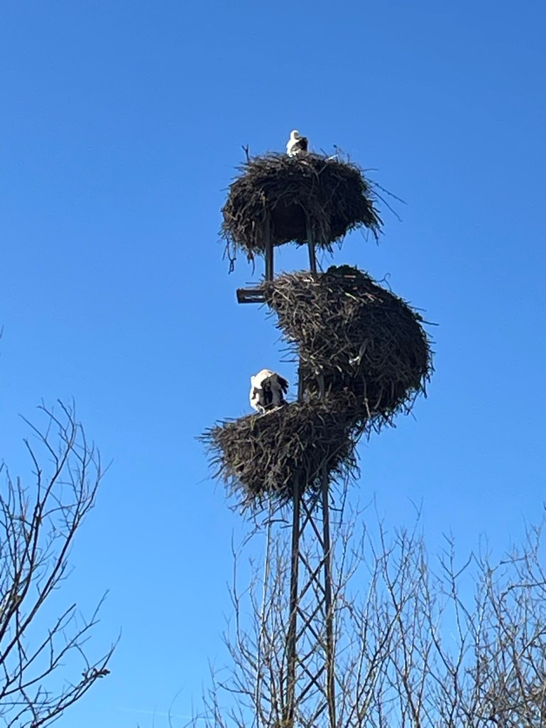 Mes cigognes que je cherchais depuis notre départ. Nous circulons sur une voie verte. Je roule en blaguant avec un jeune cycliste français qui revient du Maroc et qui remonte jusqu’à Paris. Ils sont en pleine forme ces jeunes !!!