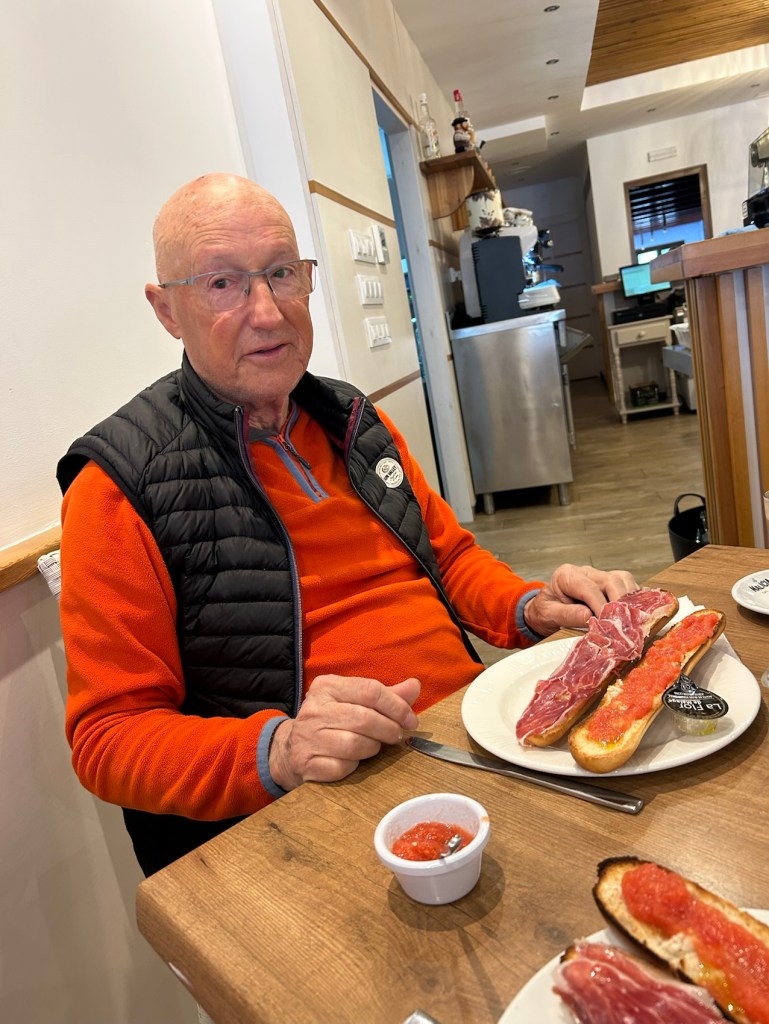 Petit déjeuner à l’hôtel, c’est le bar de l’hôtel, il est ouvert à tout le monde et à nouveau les espagnols du coin viennent prendre leur petit déjeuner.
