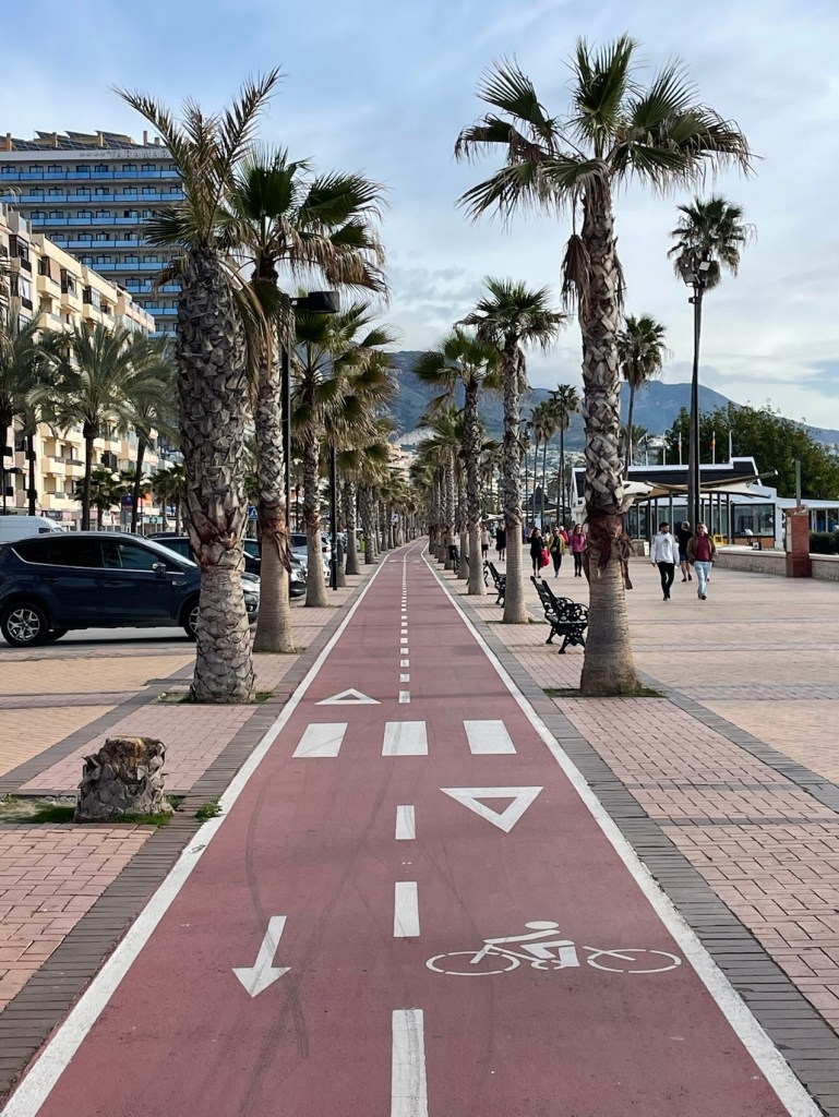 Aujourd’hui, pas d’autoroute, que des pistes cyclables, des boulevards dans Málaga et des chemins côtiers très agréables.