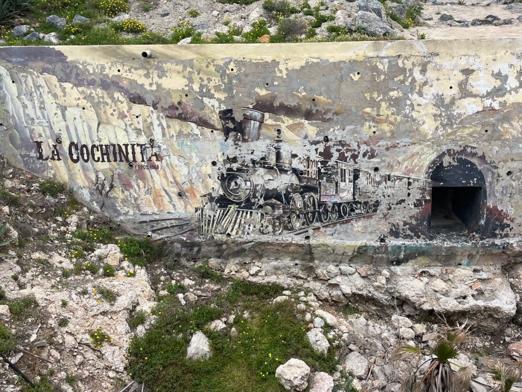 C’est une ancienne voie de chemin de fer où passait la Cochinita de 1908 à 1968. Cochinita, car le train a écrasé un troupeau de cochons le jour de son inauguration…