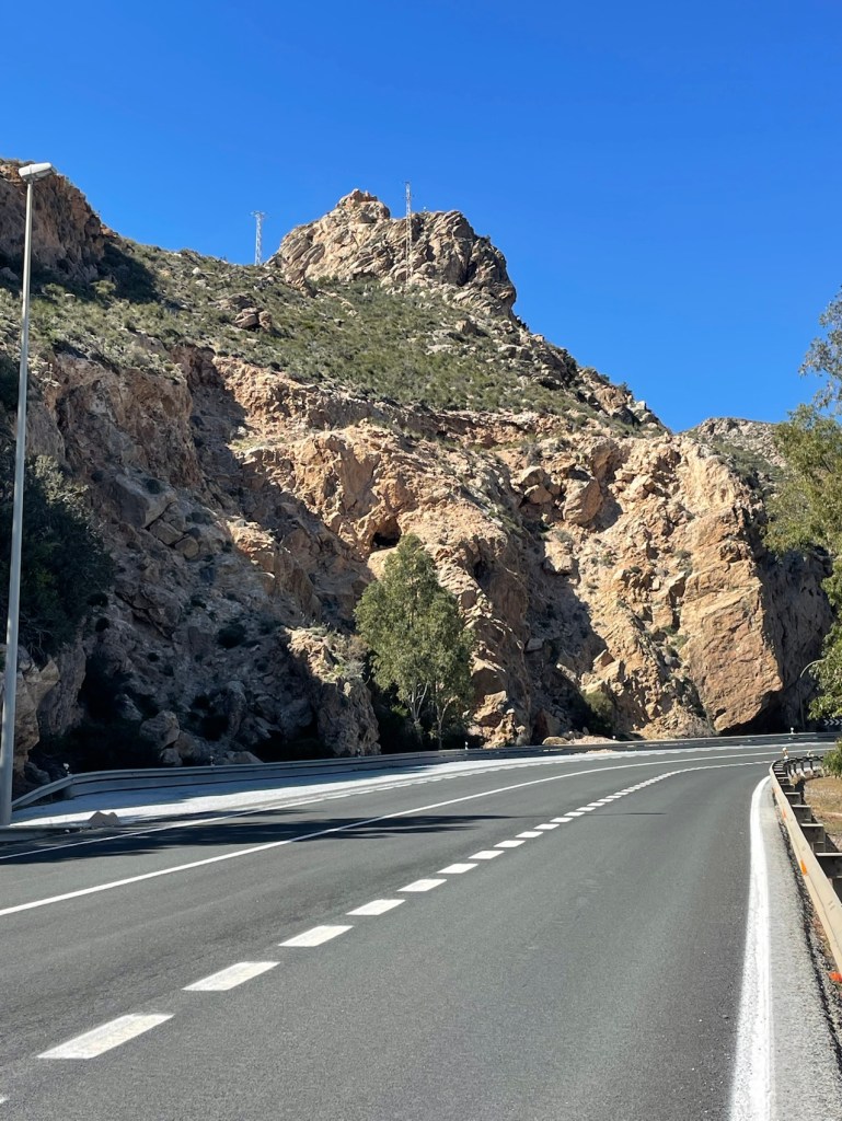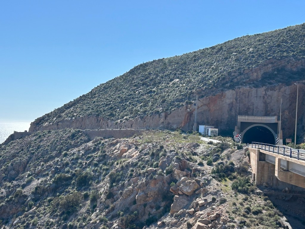 À gauche l’ancienne route. Maintenant on passe sous le tunnel.