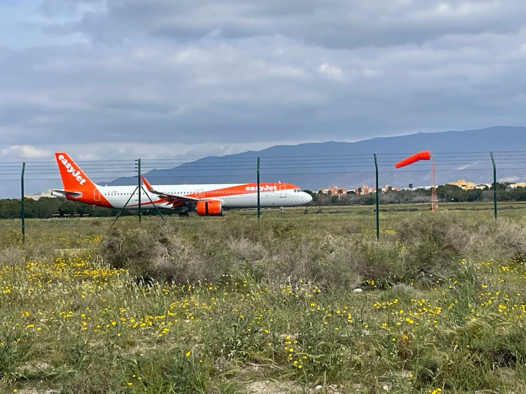 Passage près de l’aéroport. le vent est toujours là, moins fort qu’hier mais bien face à nous.