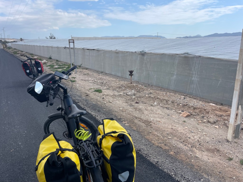 Pour raccourcir notre chemin et ne pas passer par le cap nous avons roulé au milieu des serres.