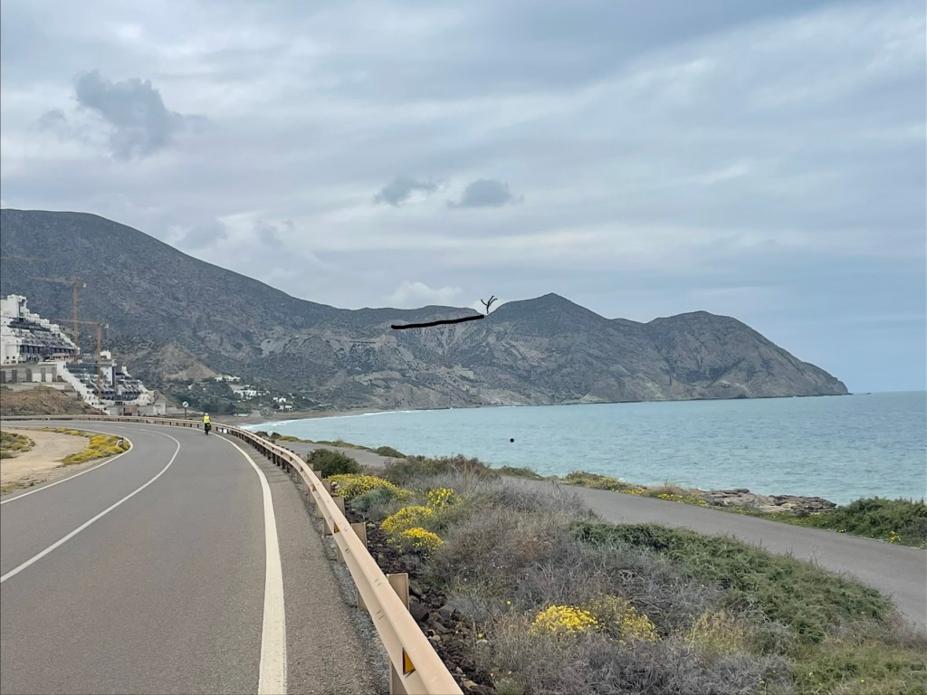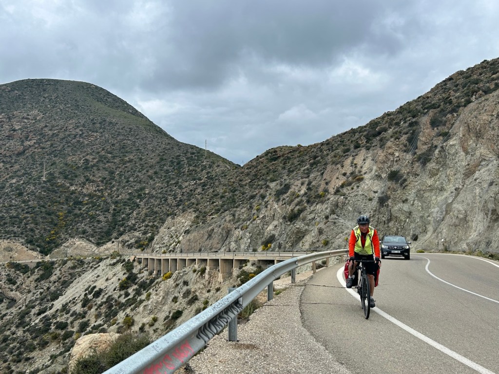 Arrivée à Carboneras par une belle descente. D’après Yves cette partie de notre trajet était plate, erreur, avant de descendre il a fallu monter !!!