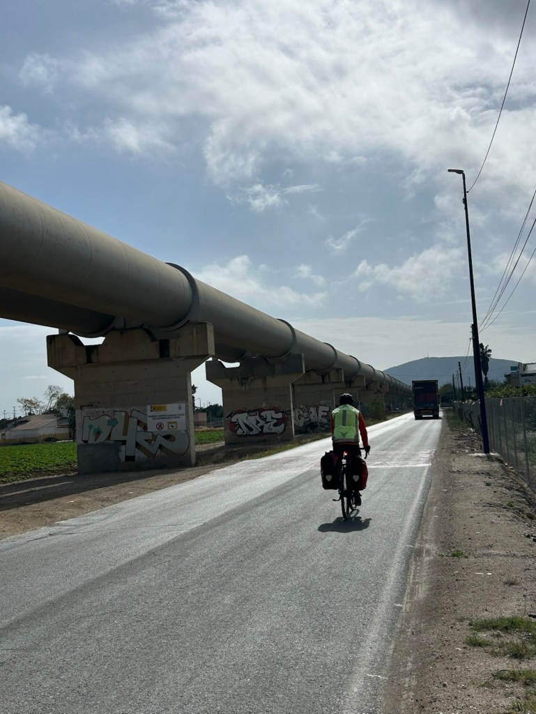 Grâce à cette irrigation nous roulons à côté de cultures maraîchères.
