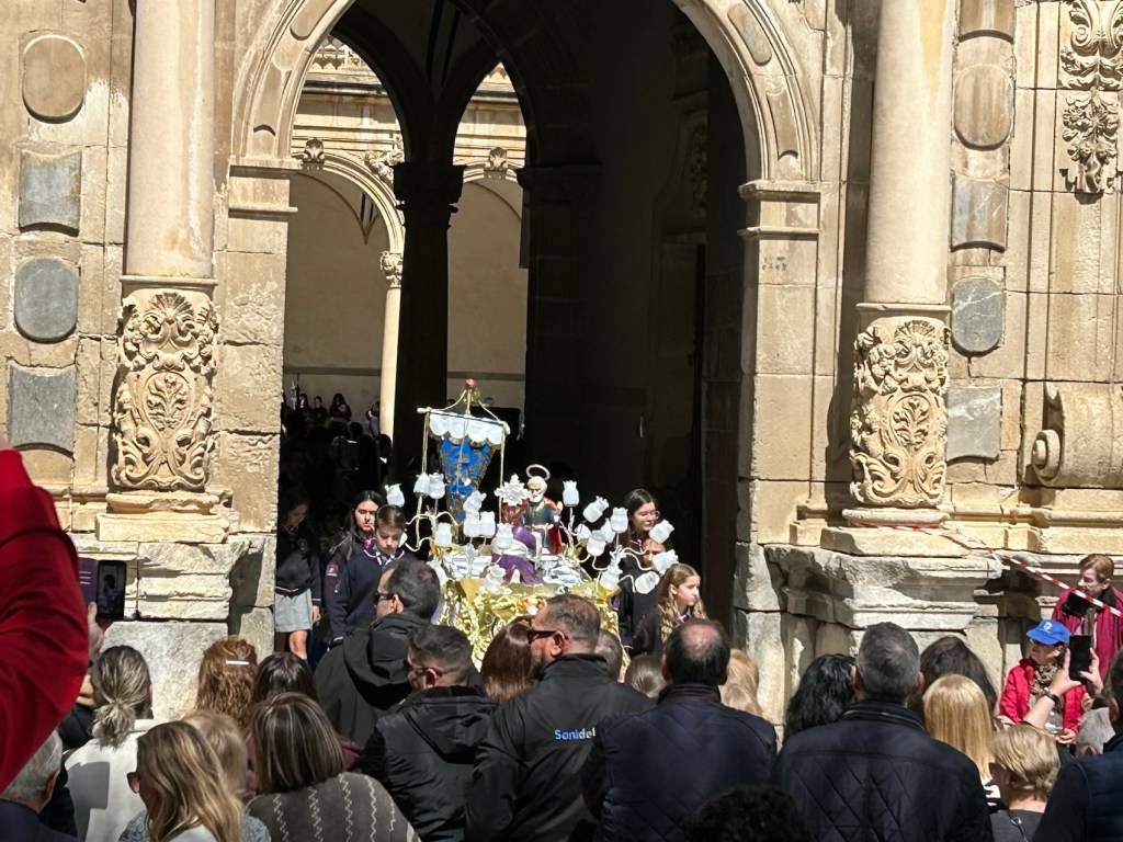 Les petits du collège font la même procession que feront les adultes pour la semaine sainte.