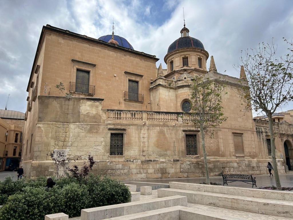 Un attroupement devant le collège Santo Domingo d’Orihuela.