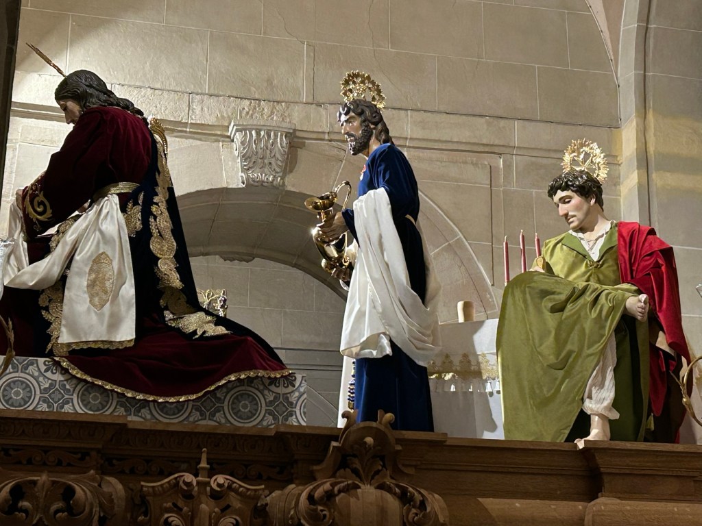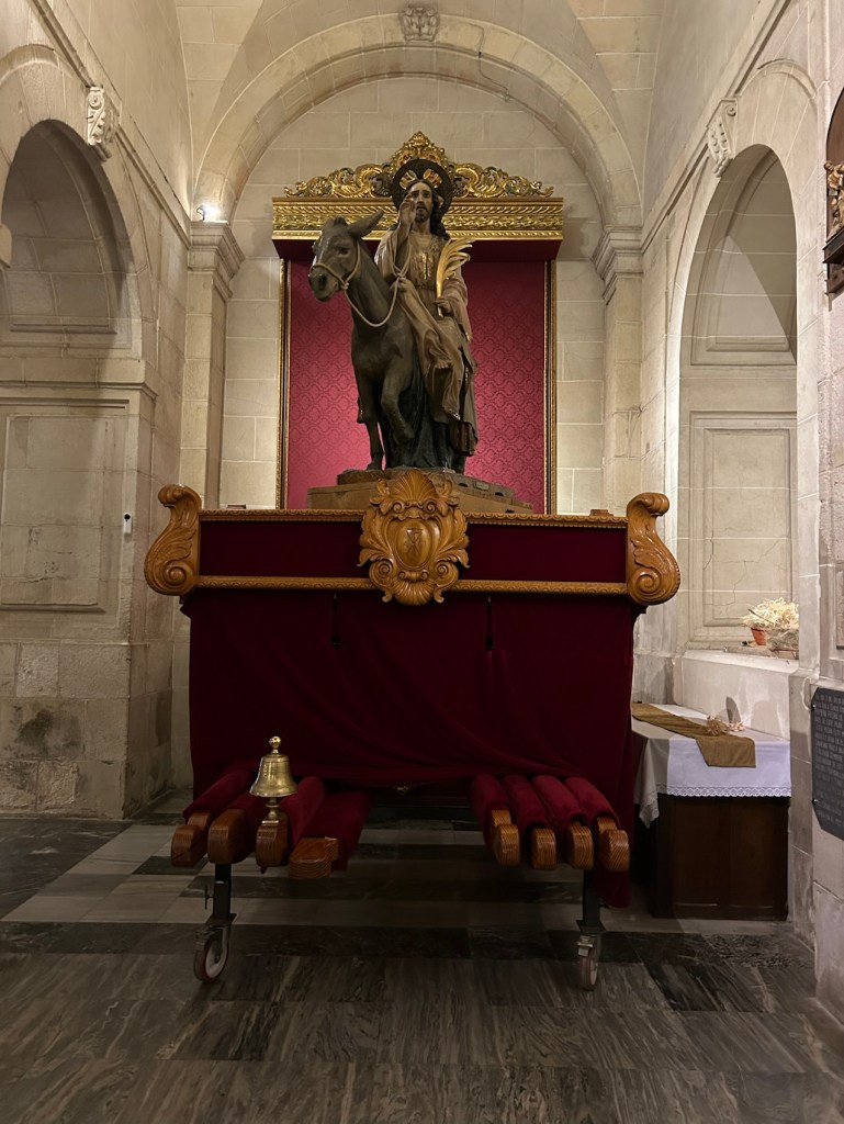 À l’intérieur de la basilique, il y avait 10 chars prêts pour les processions de la semaine sainte.