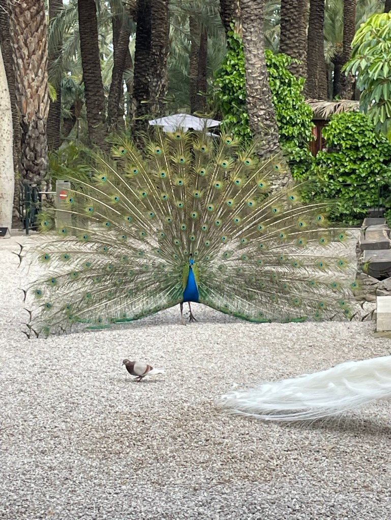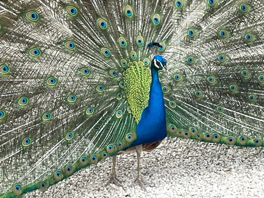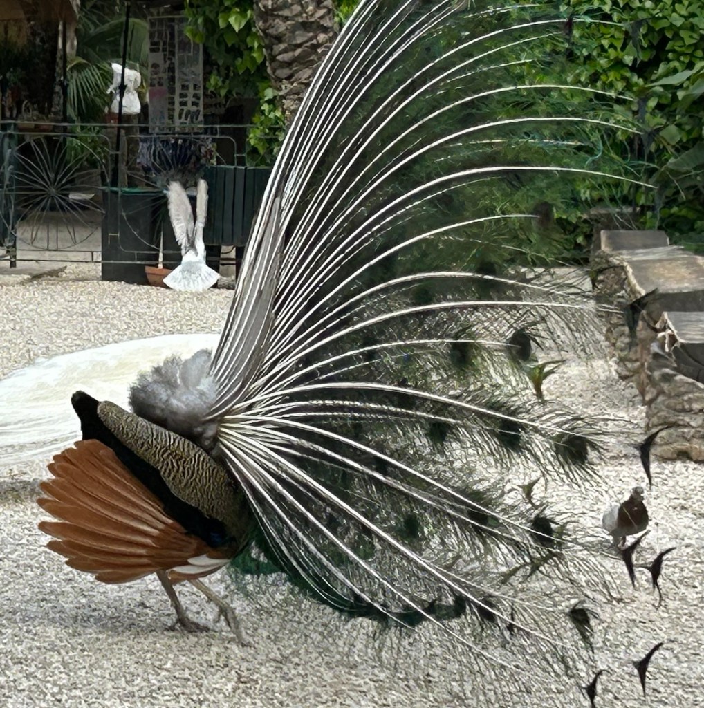 À l’intérieur, un paon nous a fait un spectacle… on aurait dit qu’il était dressé !!!